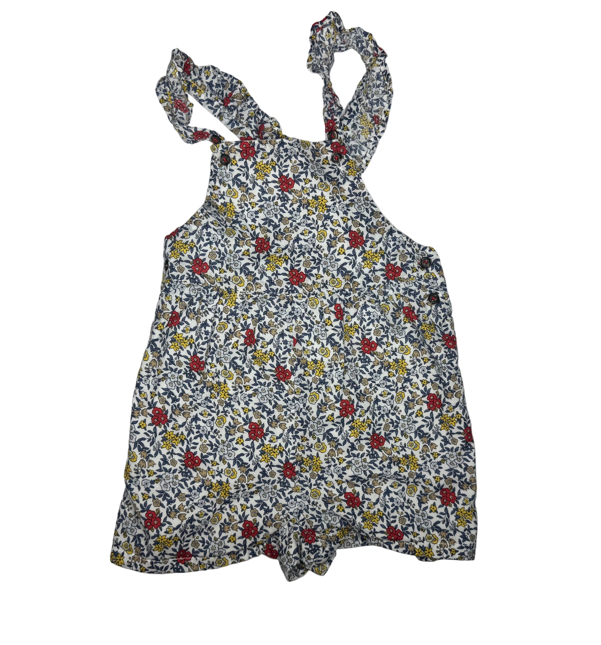 • Sleeveless romper with ruffle straps for a playful touch
