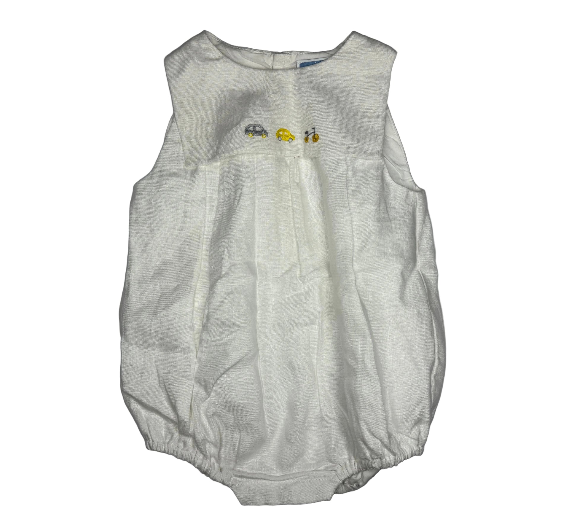 • Delicate embroidered car and bicycle detail on chest