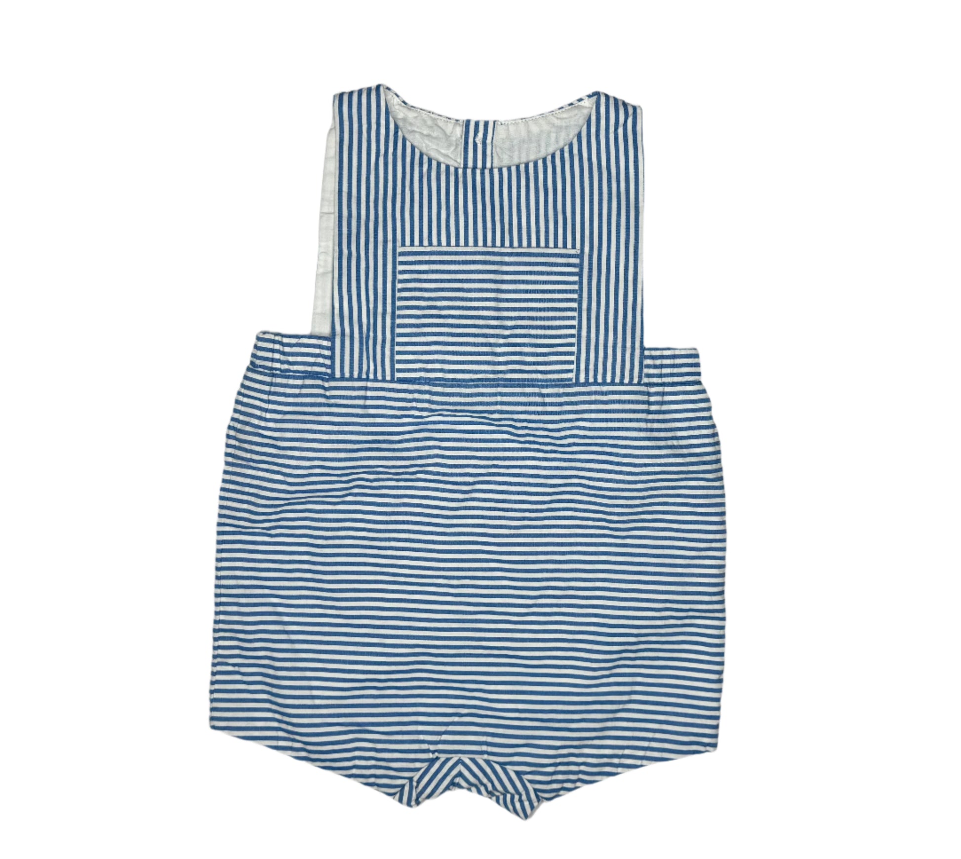 • Timeless French-style romper with vertical bib and square pocket detail