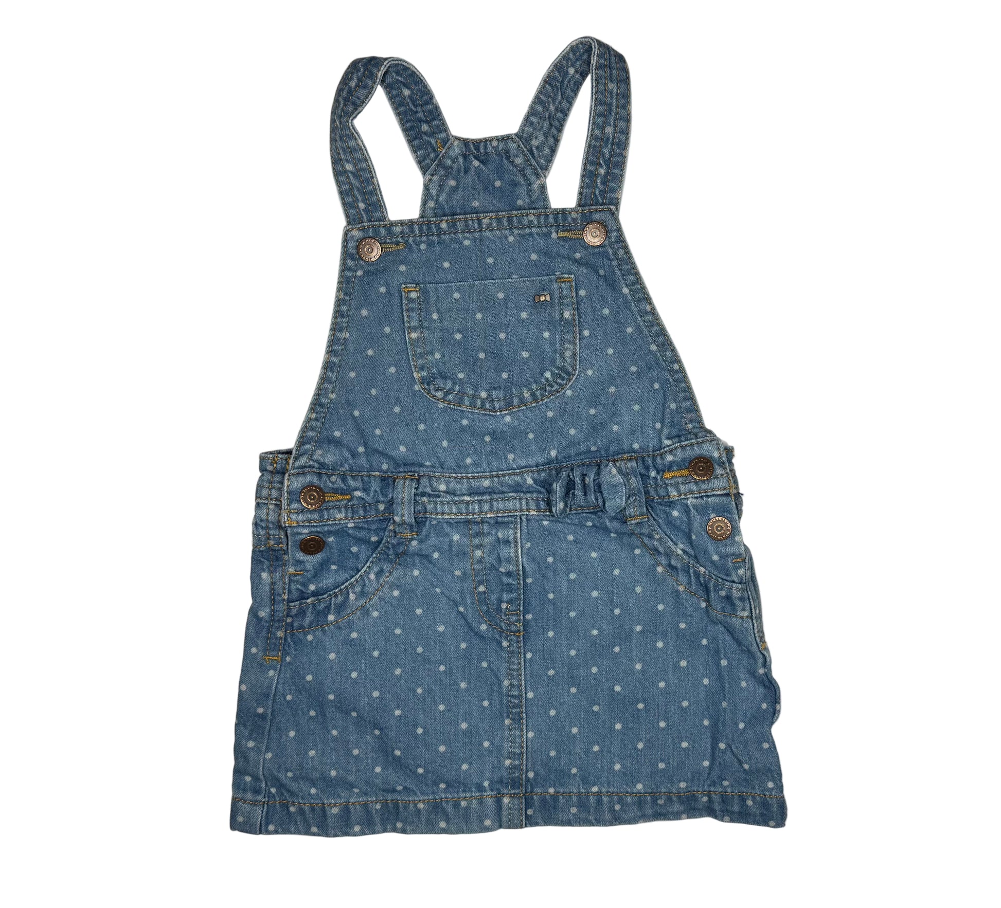 A timeless denim pinafore with a playful twist – perfect for layering through all seasons.