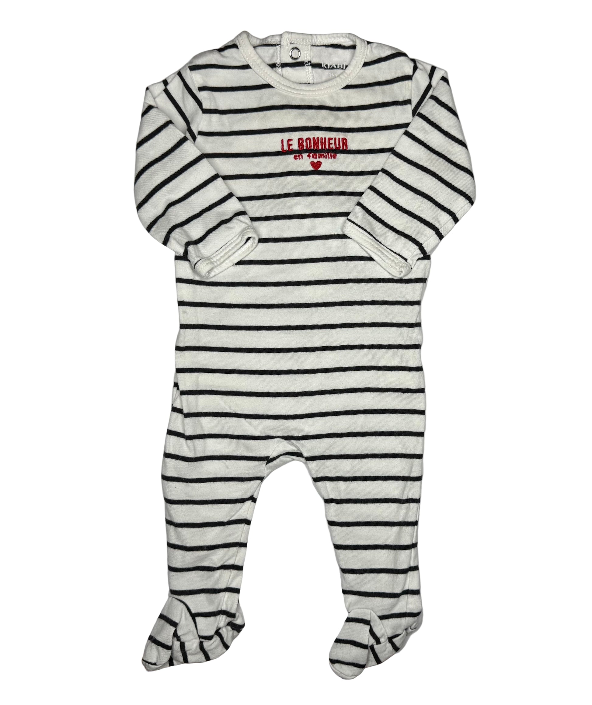 • Classic Breton stripe design with “Le Bonheur en Famille ❤️” embroidery