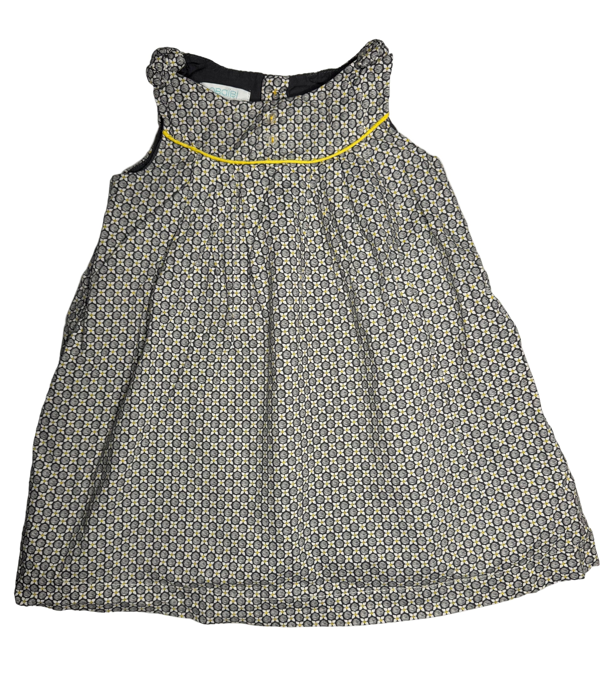 Colour: Navy with cream geometric pattern and yellow piping detail