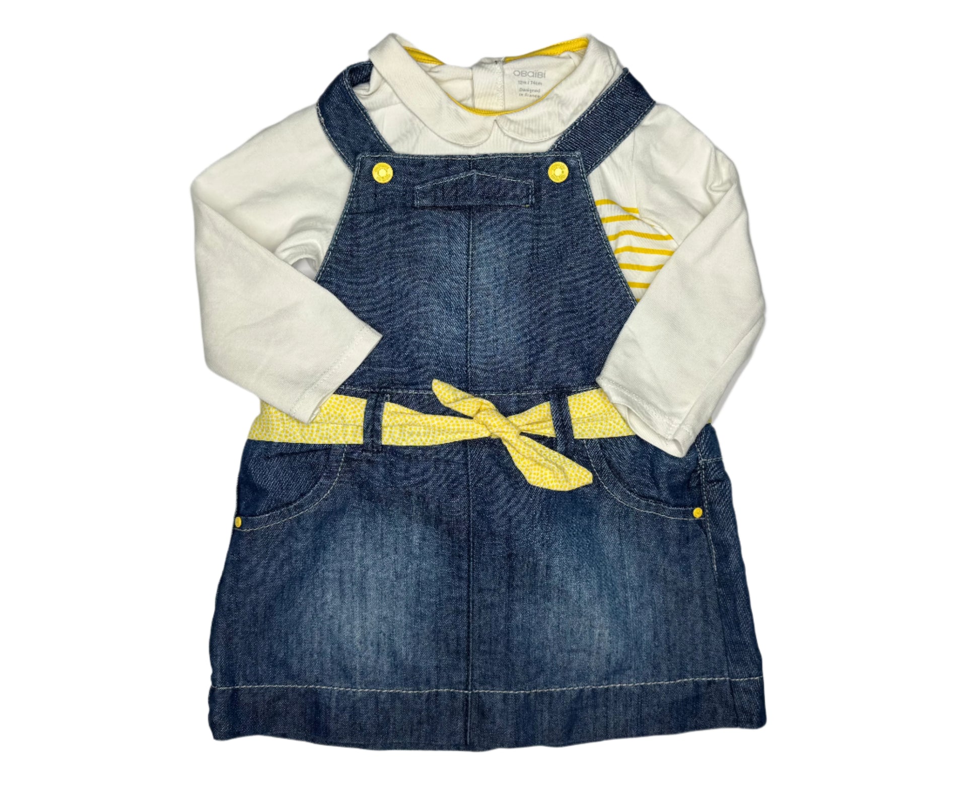Fabric: Cotton blend denim pinafore with soft cotton long-sleeve top
