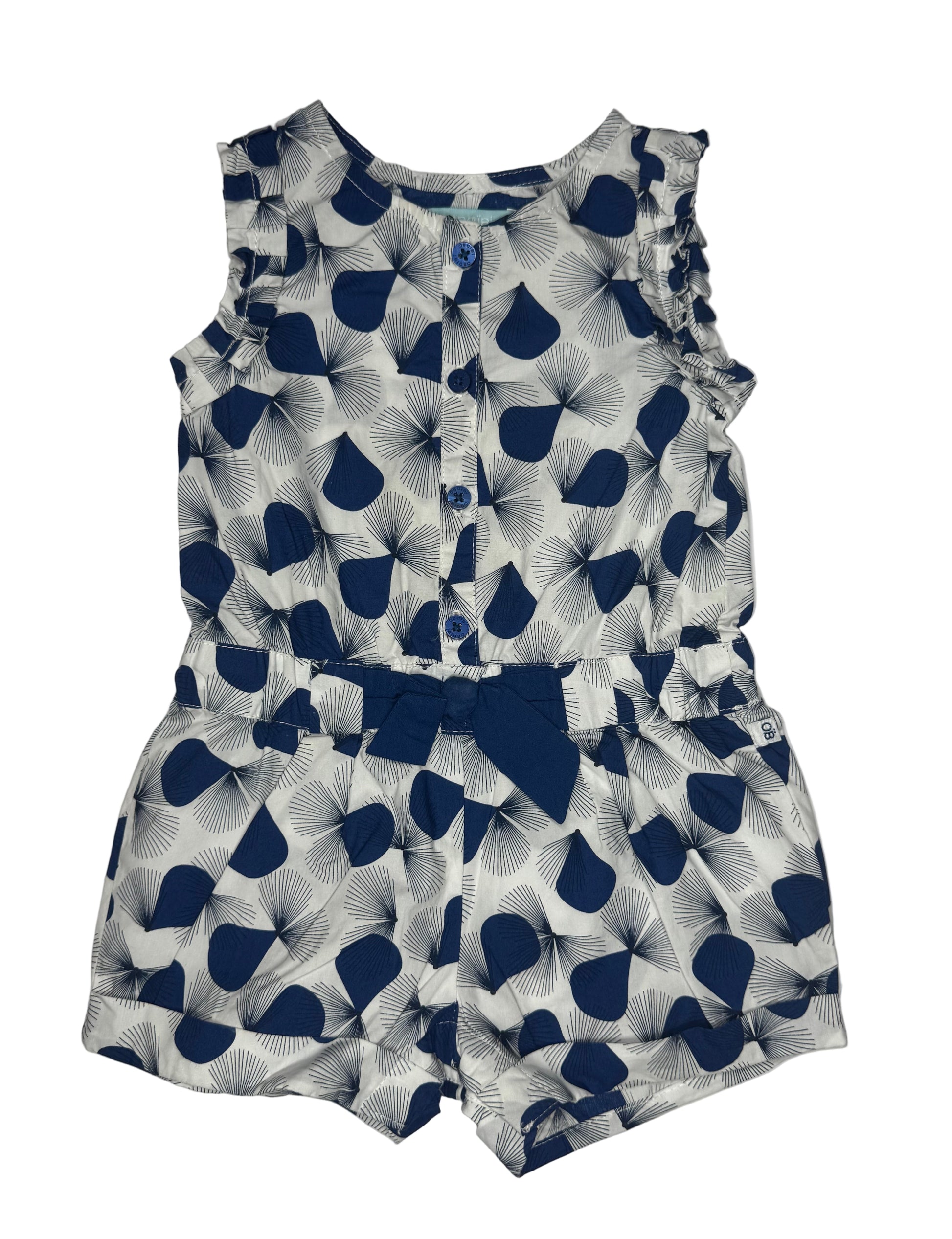 • Sleeveless romper with flutter ruffle trim at the shoulders