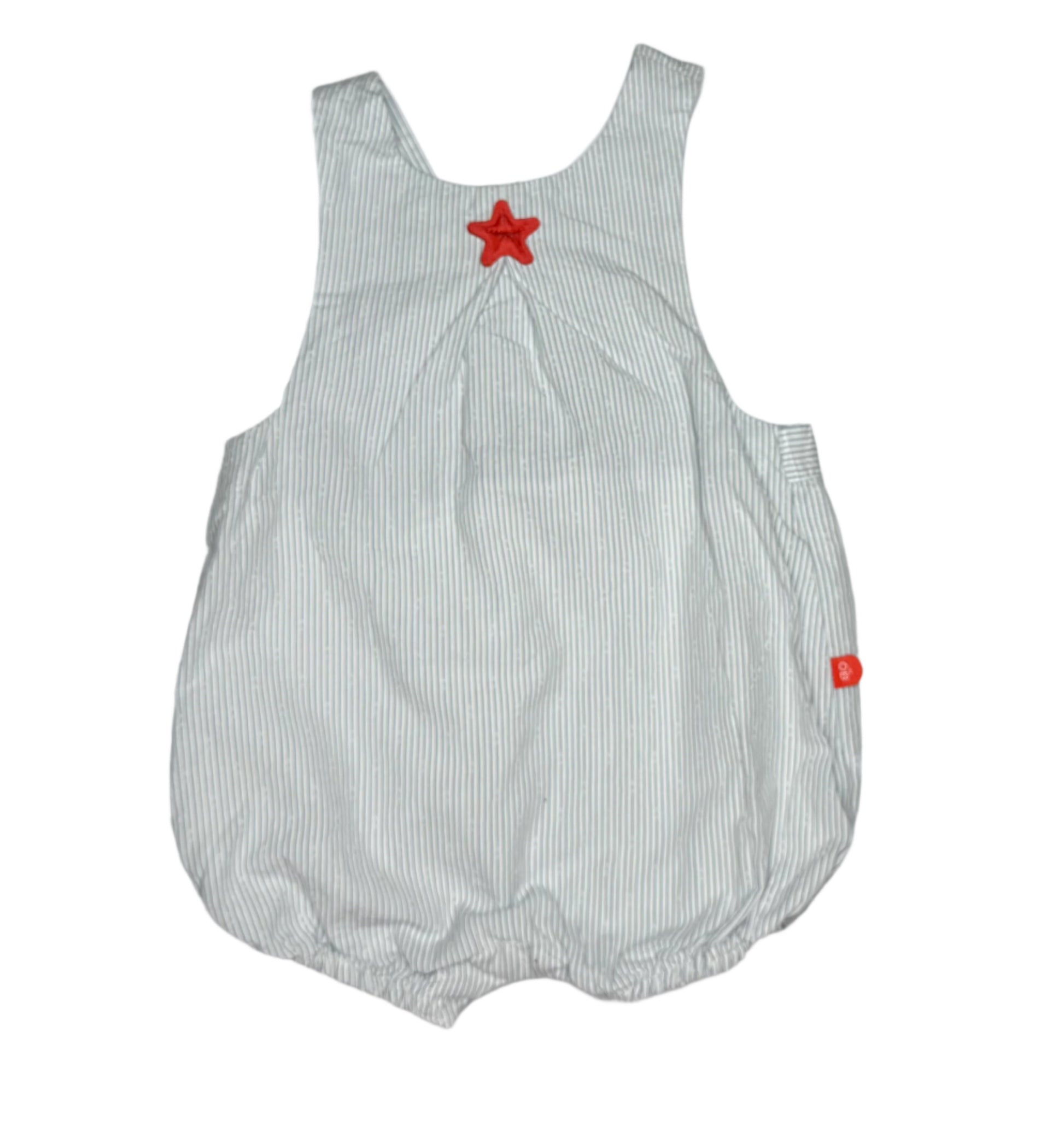 Colour: Pale blue with fine white pinstripes and red starfish detail