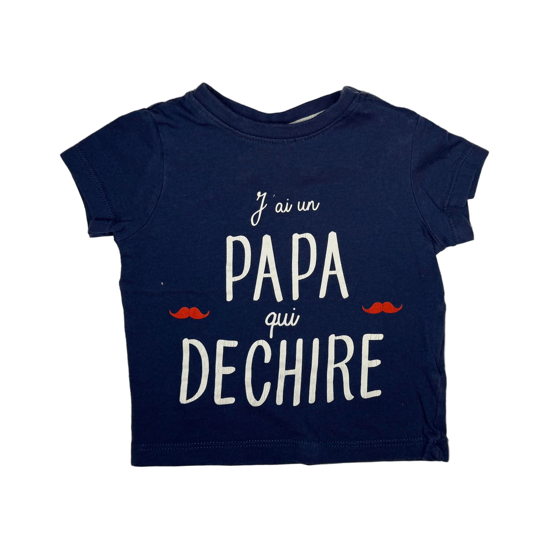 • Fun French slogan print: “J’ai un papa qui déchire” (“I have an awesome dad”)