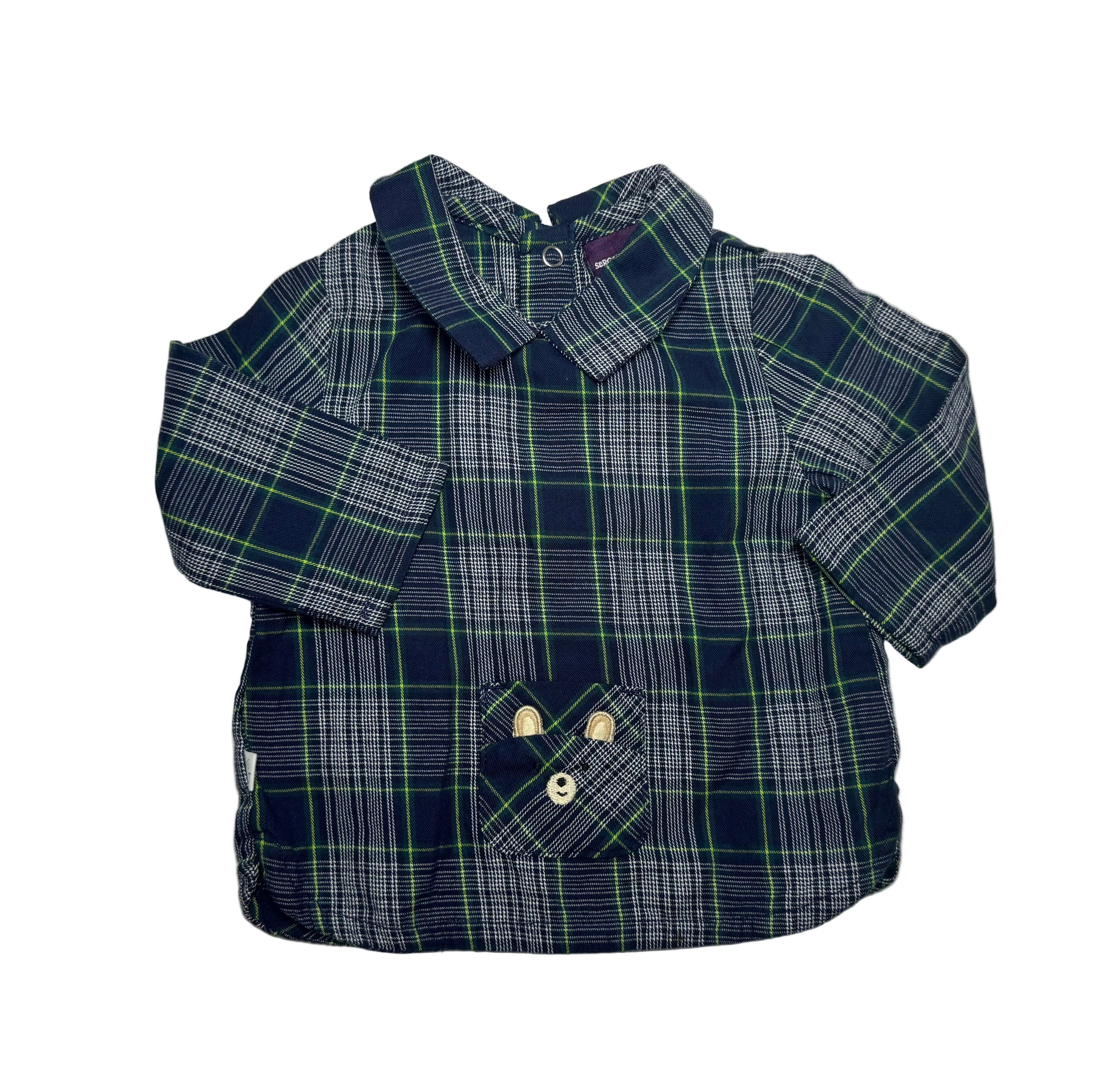 Colour: Navy blue with green and white check pattern