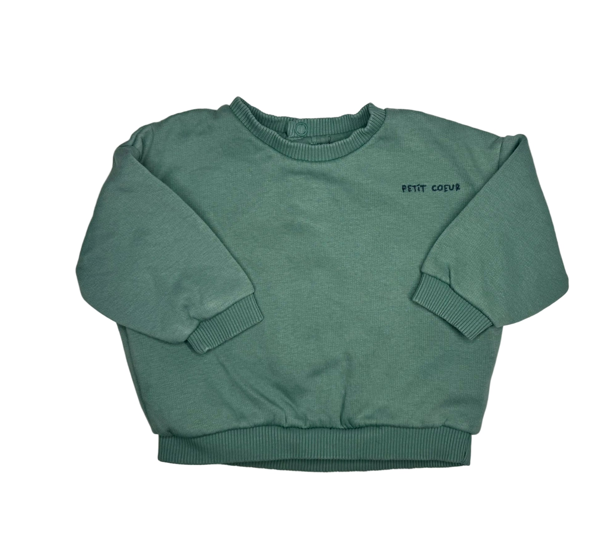 A cosy everyday sweatshirt in a beautiful muted teal tone, ideal for cooler days and gentle on delicate skin.