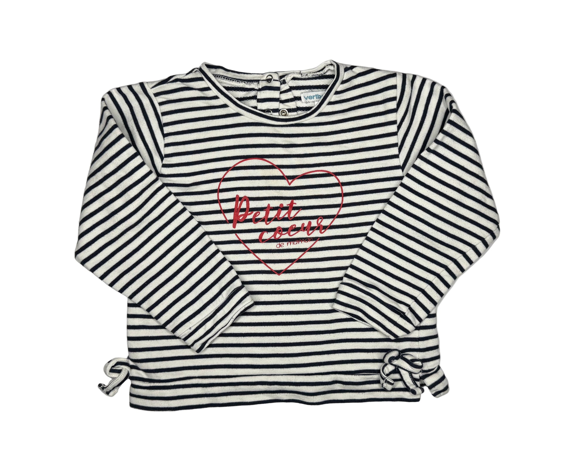 Colour: White with navy stripes, red heart print with “Petit Cœur de Maman” text